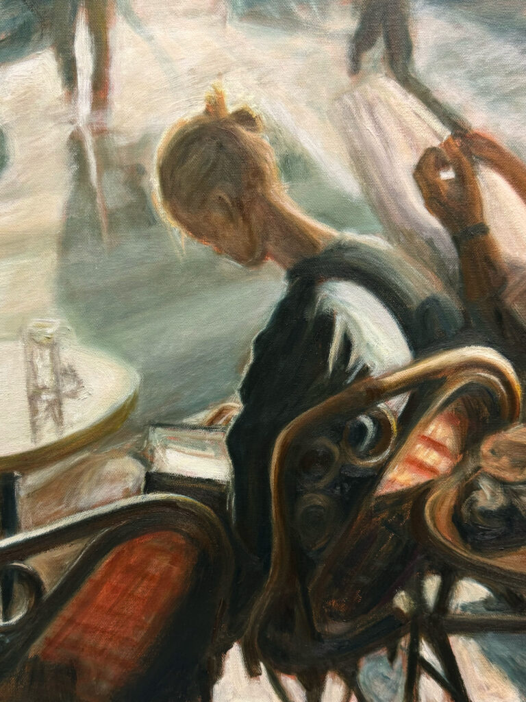 “Toen ik Iris vroeg om een plek in Suzhou (China) na te schilderen, waar ik een half jaar heb gewoond, heeft ze dit prachtig gedaan. Iedere keer dat ik naar het schilderij kijk, word ik teruggebracht naar die tijd. Een hele toffe herinnering om thuis te hebben hangen.”
